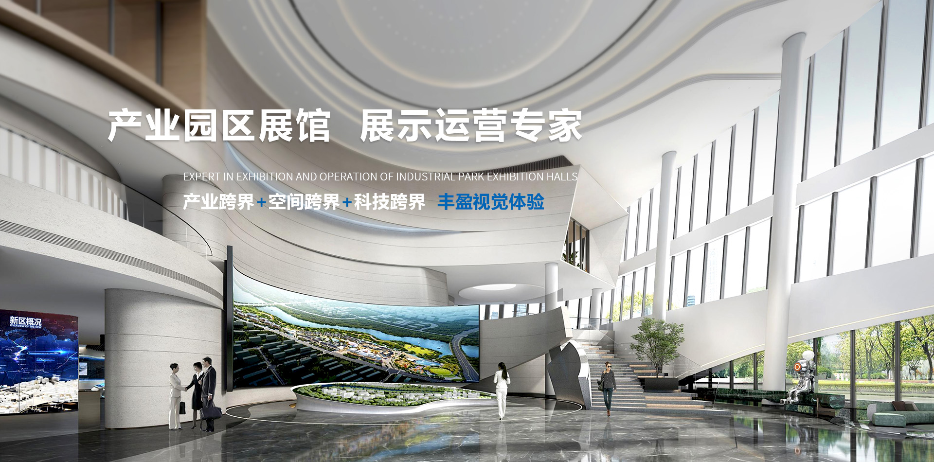 華竣國際集合了產業定位、前瞻策劃、創意設計、數字視覺、定制工程、生態運營為一體的全流程展示服務,致力于為城市、產業園區、新興產業、大健康產業、教育科普、